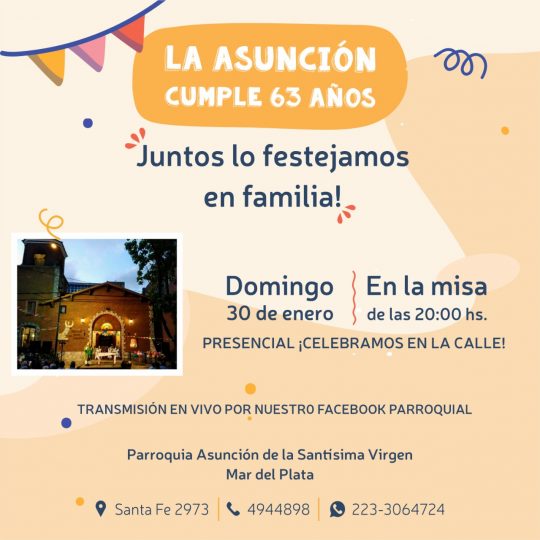 La Parroquia cumple 63 años el próximo Domingo 30 de enero y te invita a festejarlo con una Misa aniversario que será celebrada en la calle a las 20 hs. […]