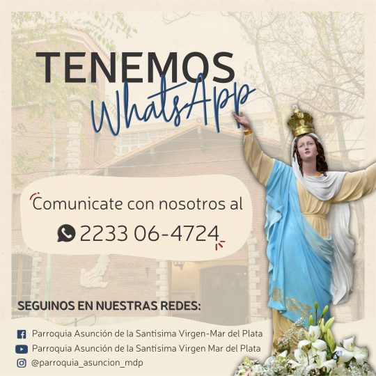 ¡Nueva forma de comunicación! Inauguramos un número de WhatsApp de la Parroquia. Podés hacer consultas y enterarte de la información que precises. Escribí al 2233 06 4724
