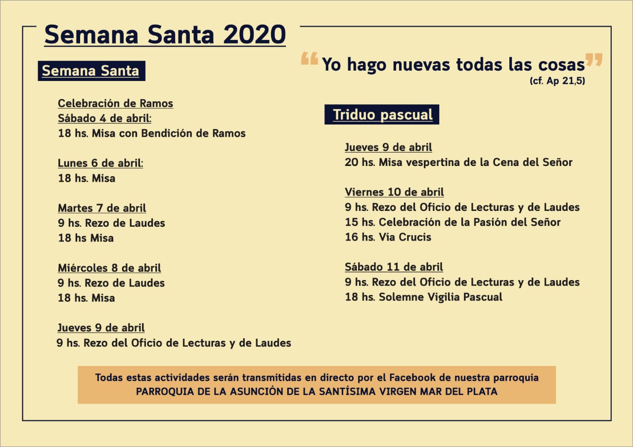 A las puertas de la Semana Santa te invitamos a compartir las celebraciones en este contexto tan particular que estamos…