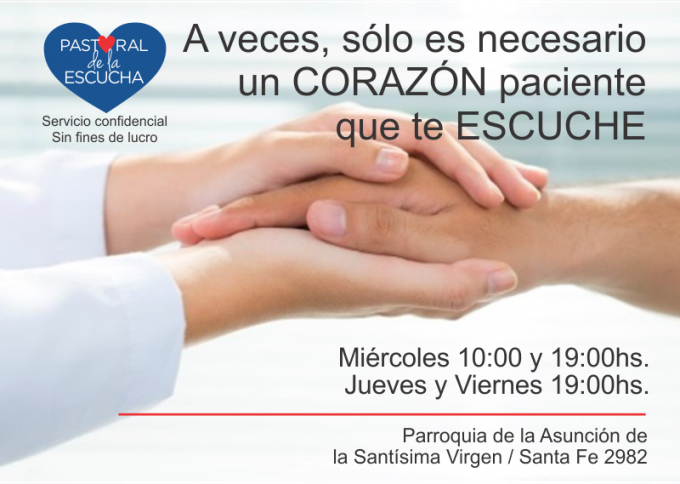 La Pastoral de la Escucha llegó a la Parroquia Asunción. Es un servicio confidencial y gratuito. Acercáte!